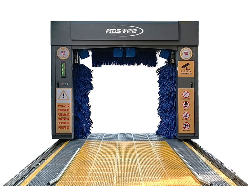 The Maddis double-track tunnel car washer allows the vehicle to remain stationary during washing. The tracks drag the vehicle forward to complete the cleaning, which is safer and faster. It can wash over 400 vehicles per day.